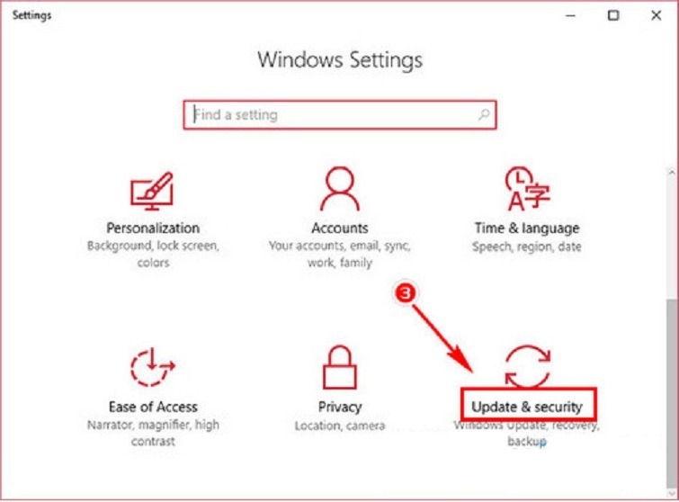 - Chọn Update & Security (Cập nhật & Bảo mật).