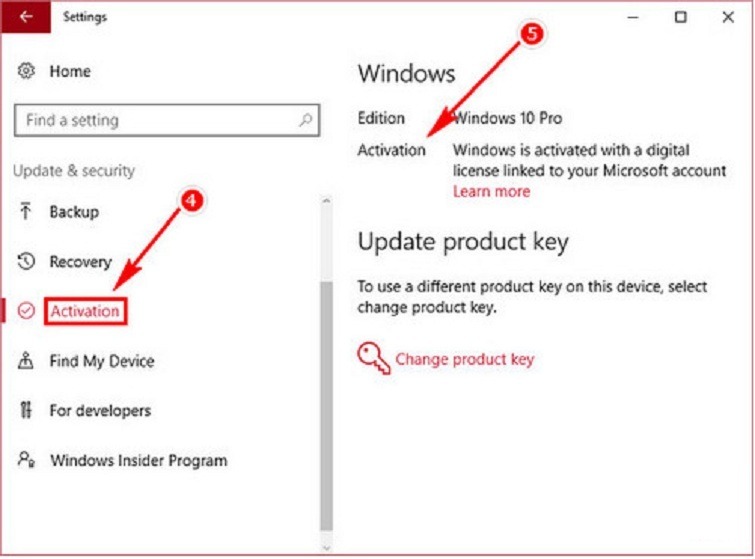 - Xem trạng thái trong mục Windows activation.