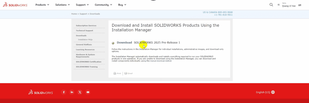 - Tìm và chọn phiên bản SOLIDWORKS 2025: Trên trang chủ SOLIDWORKS đang phát hành bản PR1.