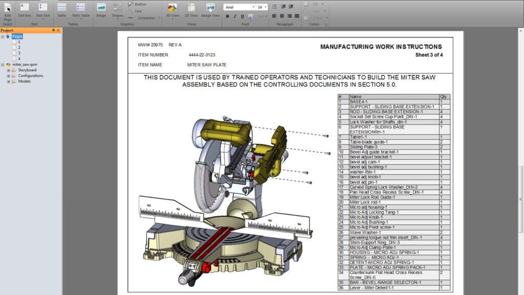 Một trong những điểm mạnh nổi bật của QuadriSpace là khả năng tự động trích xuất dữ liệu từ các mô hình 3D để tạo ra báo cáo kỹ thuật chi tiết. Trong đó bao gồm hình ảnh, mặt cắt, chú thích và thông tin kỹ thuật liên quan. Điều này giúp người dùng tiết kiệm thời gian và công sức so với việc tạo báo cáo thủ công.